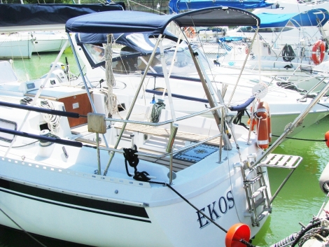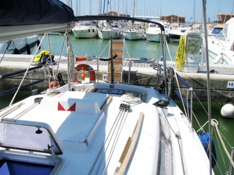 rivestimento sedute in pozzetto in teak; timone a barra, tendalino, bimini top, scaletta bagno, passerella, plancia di poppa, doccetta esterna, pilota automatico, gps portatile, vhf, ecoscandaglio;